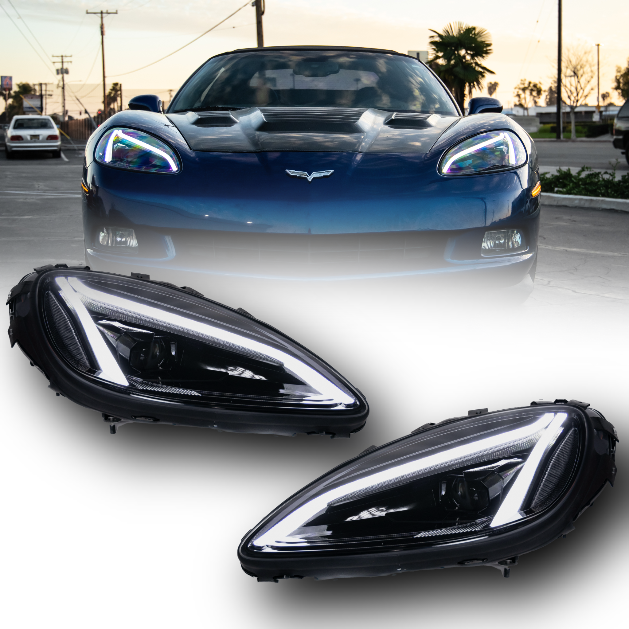 2005-2013 Corvette C6 Projector LED Headlights C8 Style Amber Sequential Turn Signals